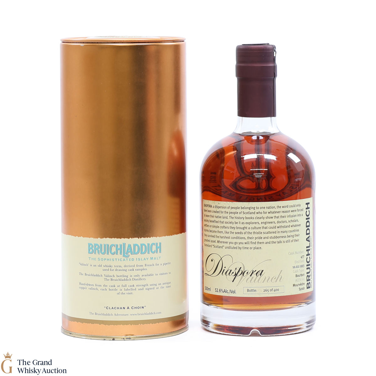 This bottle of Bruichladdich Diaspora Valinch was distilled on the 10th of February 1993.