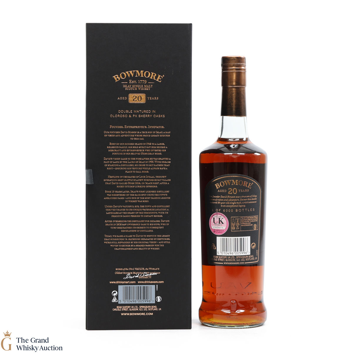 This 20-year-old celebrates and is a testament to the founder of Bowmore. This dram has gone through a double maturation period of 15 years in Oloroso Sherry Butts followed by 5 years in a first fill PX Butts. One of only 6000 bottles.