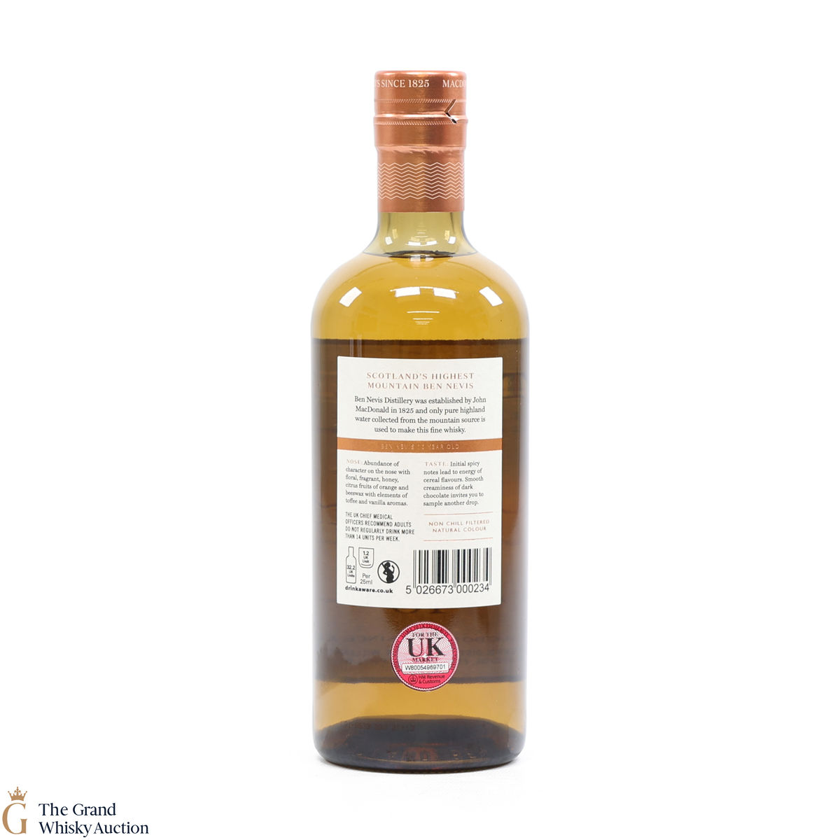 Due to the various ages of bottles and their seals, the condition of liquid is at the buyer's discretion and no claim can be lodged against failure/leakage in transit. Loss and breakage cover is available at 3% of the hammer price as standard. If the lot is not insured, no claim can be lodged against the courier or The Grand Whisky Auction for breakage or loss in transit.