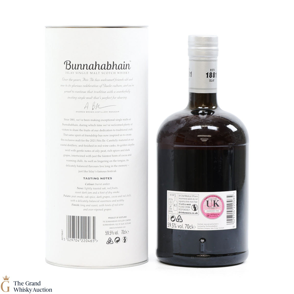 Bunnahabhain's first release for Feis Ile 2021 is this limited-edition smoky whisky. Distilled on the 10th of October 2013, this single malt was finished in Moine Bordeaux casks which gives the Bunnahabhain a delicately balanced flavour. Bottled on the 25th of November 2020, this is one of only 5166 bottles produced.