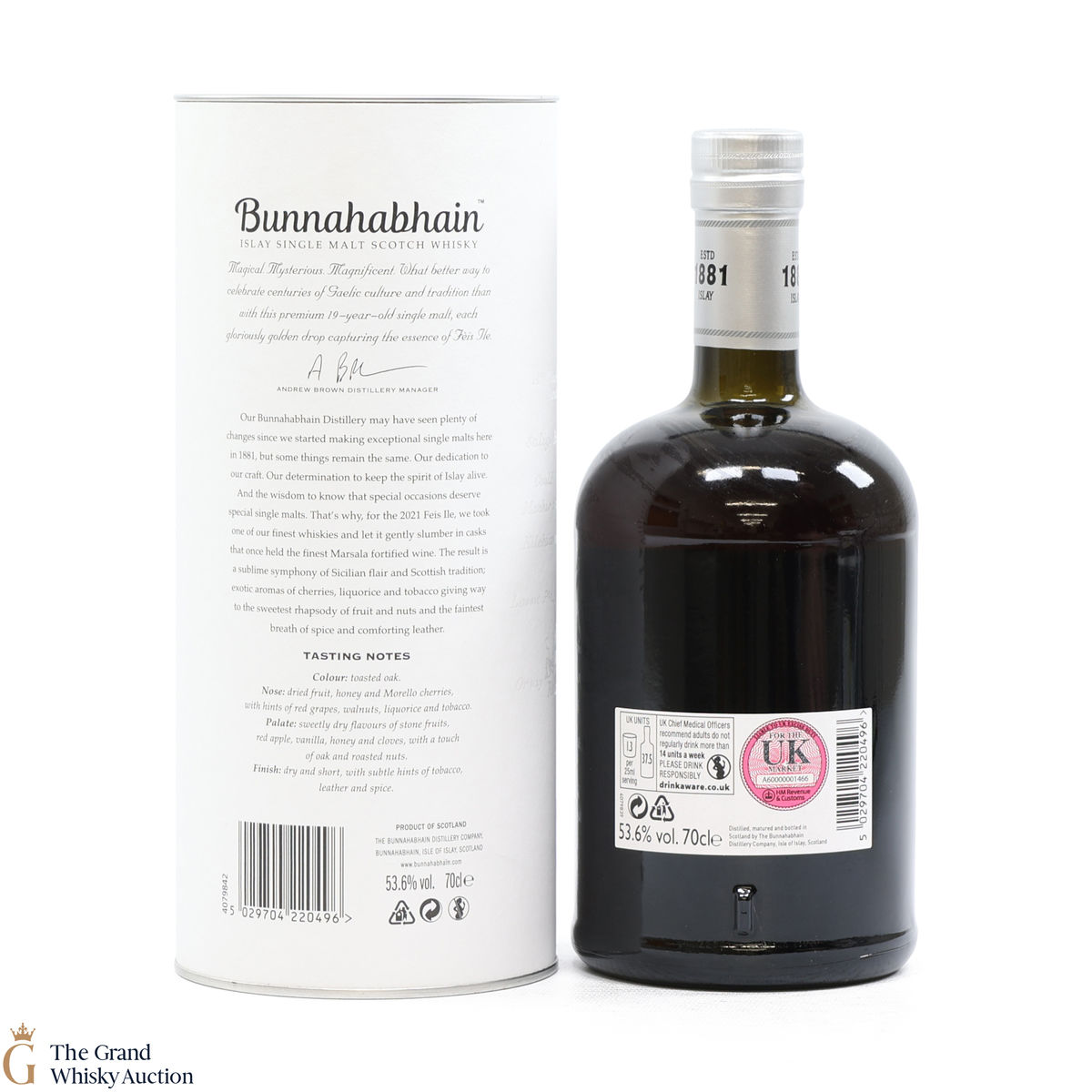 For Feis Ile 2021, Bunnahabhain Distillery released this unique bottling. Distilled back on the 8th of October 2001, this single malt was finished in a cask that once held Marsala fortified wine resulting in a combination of Sicilian flair and Scottish tradition. Bottled on the 19th of January 2021, this is one of only 1333 bottles produced.
