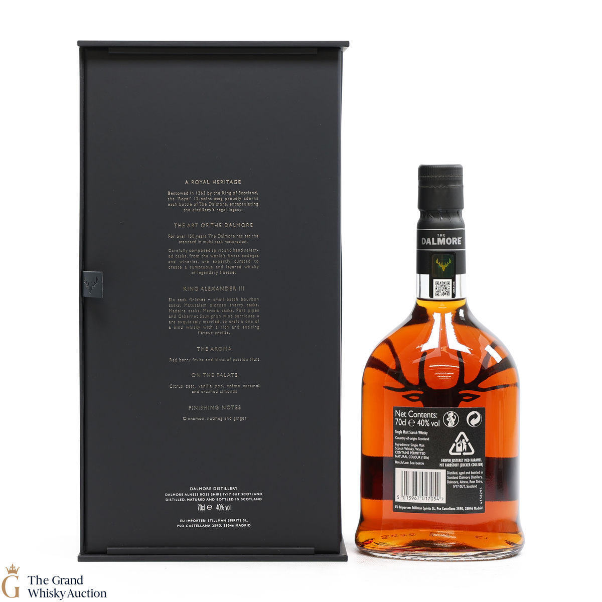 To make The Dalmore King Alexander III, Master Distiller Richard Paterson specially selected 6 casks of differently aged Dalmore malts matured in wine, Madeira, sherry, marsala, Kentucky bourbon and port casks. A remarkable feat of blending crafted to honour the act of saving Scotland's King in 1263. It is a rich, fruity Highland single malt.