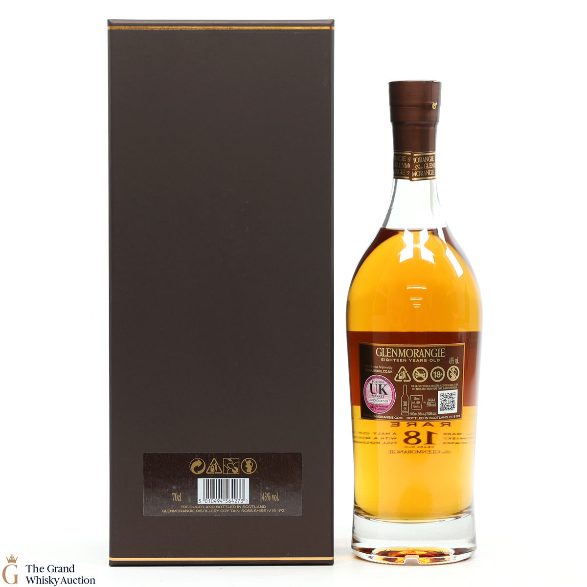 This bottle is an 18-year-old Extremely Rare, Highland single malt produced by Glenmorangie. It has been perfected by the sixteen men of Tain who have specially aged this bottle for 18 years in superior oak casks.