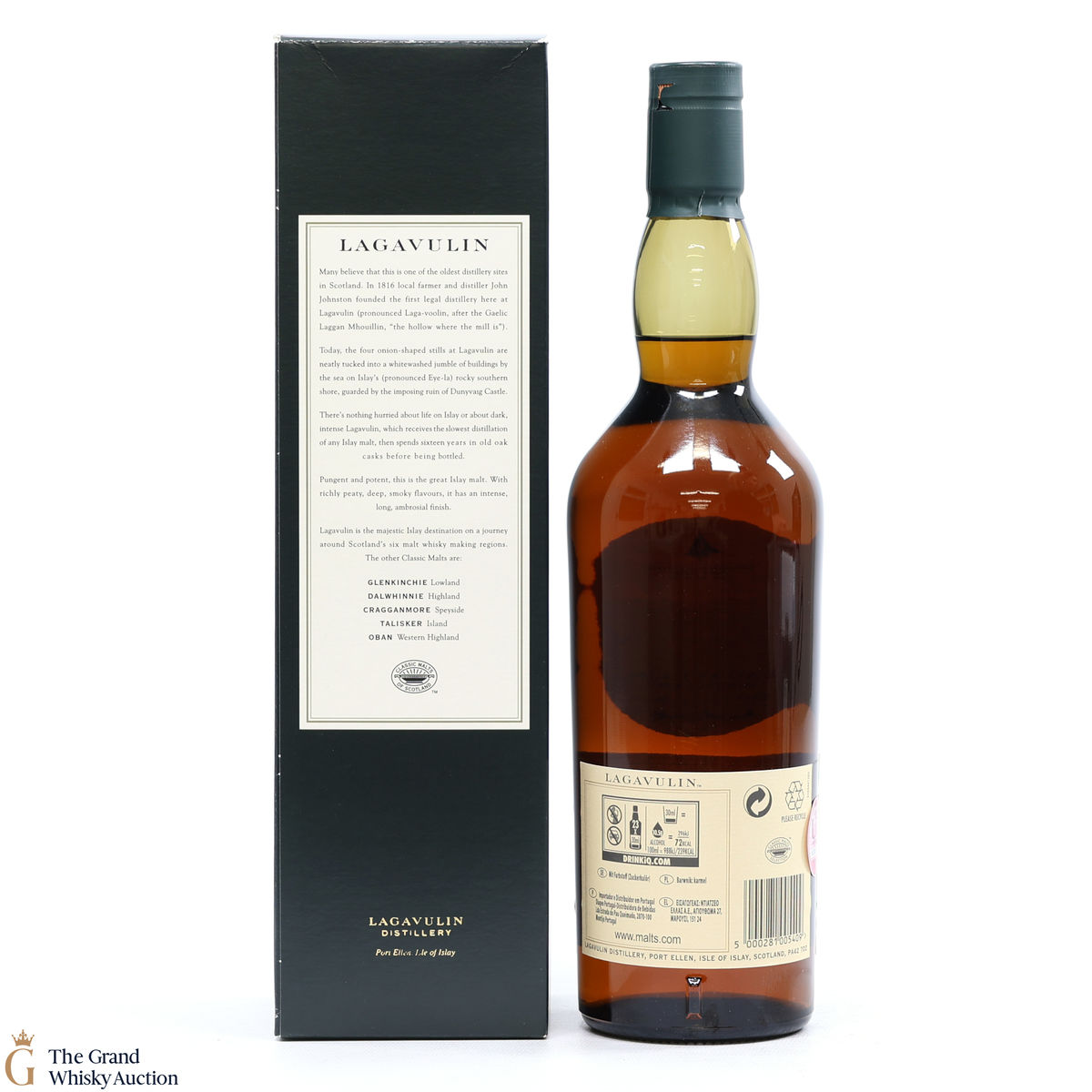 This is a popular and much sought-after single malt with the massive peat-smoke that's typical of southern Islay - but also offering richness and a dryness that turns it into a truly interesting tipple. The 16 year old, aged in oak casks has truly become a benchmark Islay dram from the Lagavulin distillery.