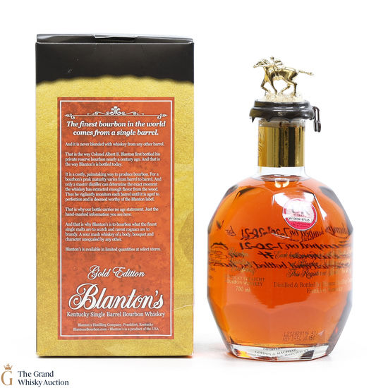 PLEASE NOTE: The wax seal on Blanton's bottles are prone to cracking in transit due to their design. Therefore, as stated in our T&C’s, we do not and will not accept liability should the seal be breached, broken, split or leak in transit. Additionally, please know due to the design of the internal cardboard packaging that surrounds the top of the bottles, it too may be torn. By bidding on this lot you have understood this to be true. Insurance is for complete breakage or loss in transit only.