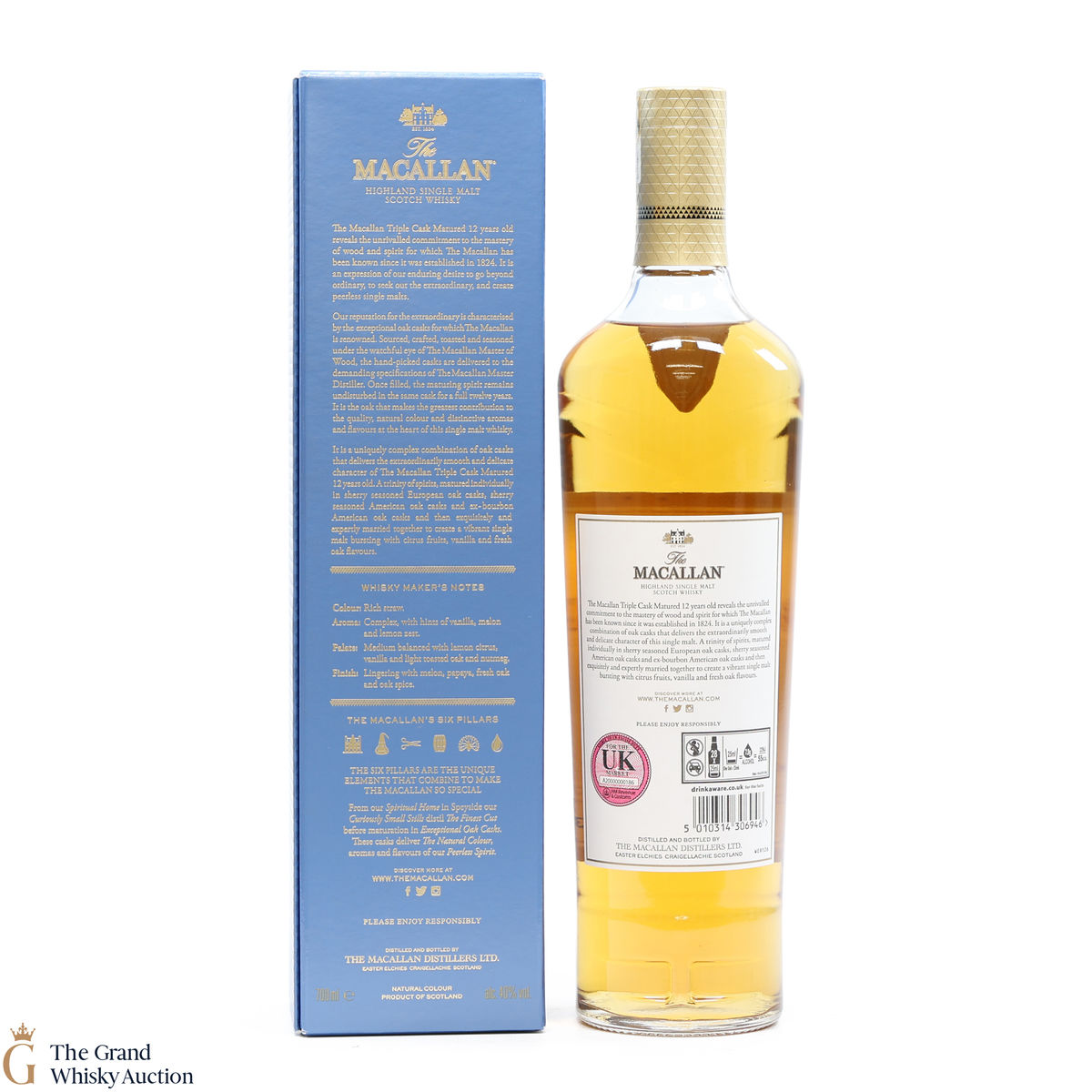The 12 year old single malt was matured for 12 years and drawn from a combination of European sherry seasoned casks, American sherry seasoned casks and American ex-bourbon casks. It is part of Macallan's Triple Cask range which was launched in 2018, taking the place of the Fine Oak range.