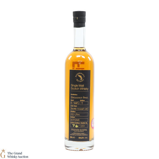 A 10-year-old private cask Bruichladdich Rhinns single malt, bottled by The Fisherman's Retreat. This 9th edition was distilled in Nov 2011, matured in a Yalumba Viognier cask, and bottled in March 2022 at 64.8% ABV. This 50cl bottle.