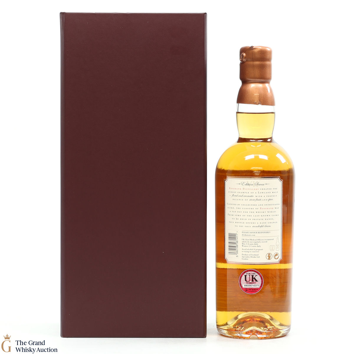 Due to the various ages of bottles and their seals, the condition of liquid is at the buyer's discretion and no claim can be lodged against failure/leakage in transit. Loss and breakage cover is available at 3% of the hammer price as standard. If the lot is not insured, no claim can be lodged against the courier or The Grand Whisky Auction for breakage or loss in transit.