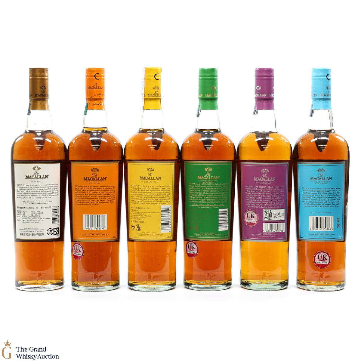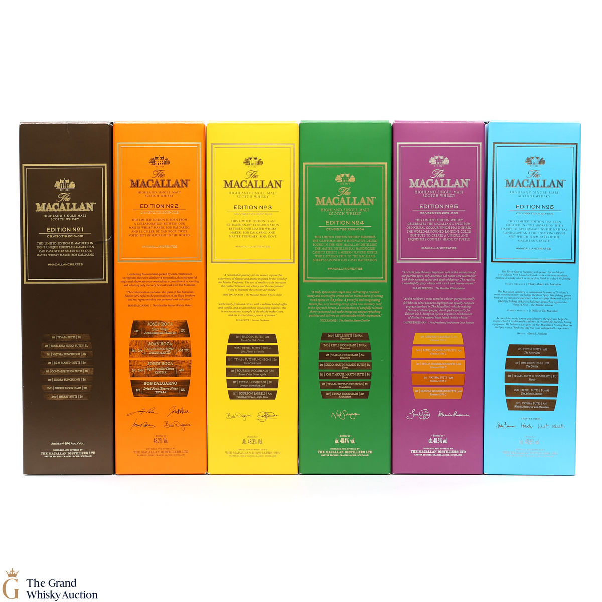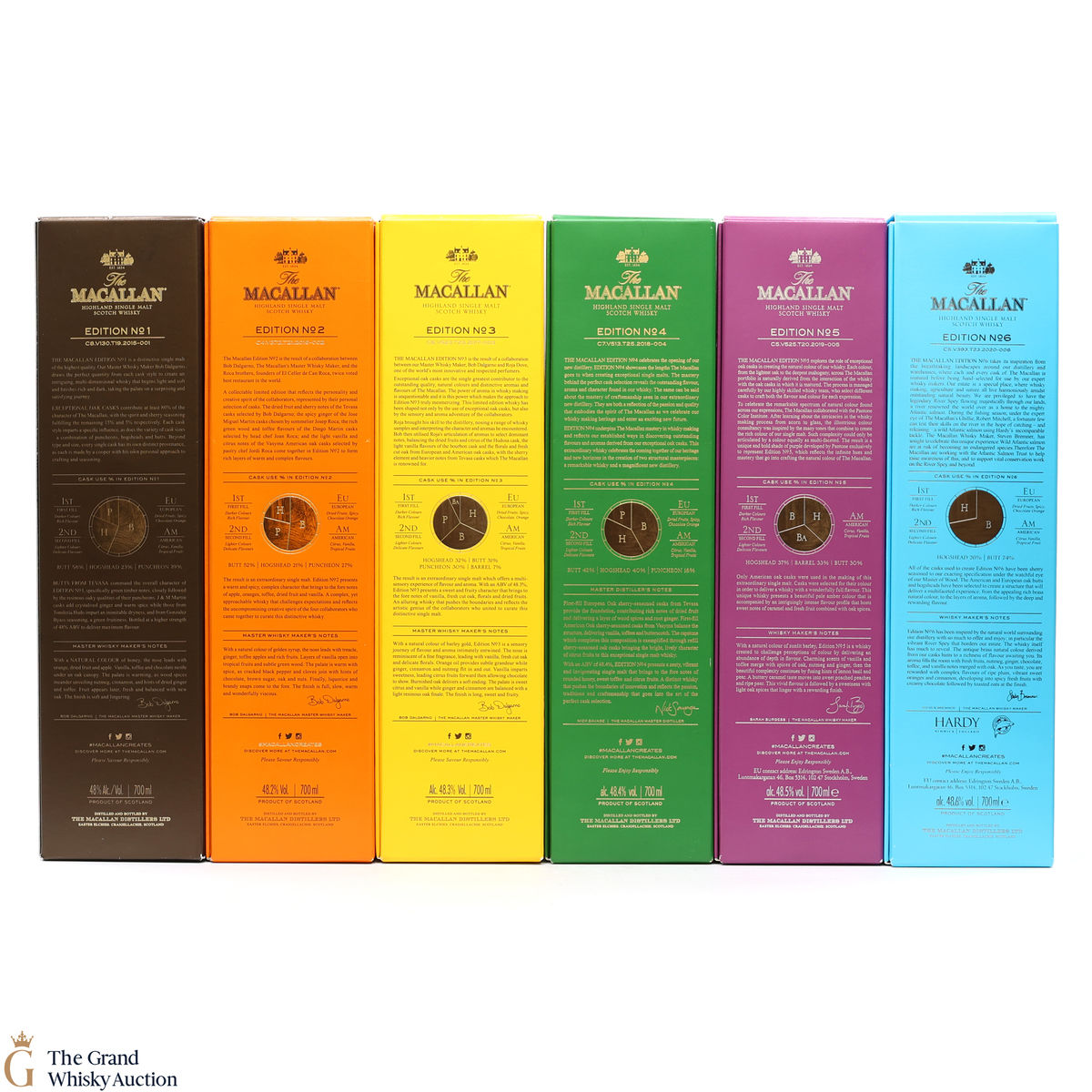 This lot brings together the Macallan Edition set to date, comprising of Edition no. 1, 2, 3 4, 5 & 6 in the annual limited edition series.