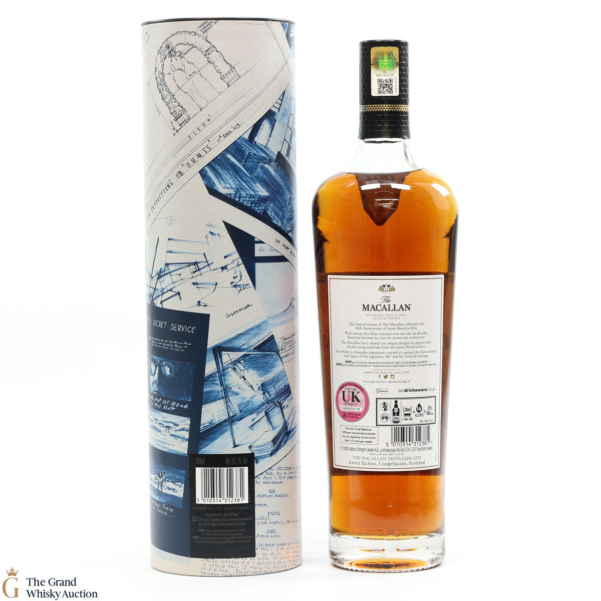 The remarkable James Bond 60th Anniversary Release is a celebration of 007 and The Macallan as modern innovators linked by their Scottish heritage. Each bottle’s packaging features an original illustrative design and colour to denote the decade it represents.