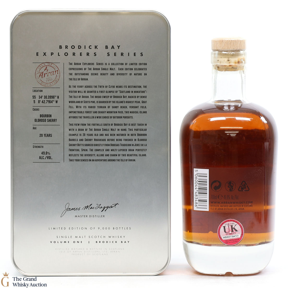 The presentation tin and the bottle label features a beautiful view from the foothills south of Brodick Bay. This is one of 9000 bottles.