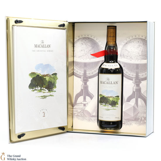 Folio 2: The second edition from The Macallan Archival Series. This distillery-exclusive bottle was released in 2017 and was limited to 2000 bottles. This 12-year-old single malt had been matured in sherry casks and bottled at 43% ABV. Presented in a book-shaped tin case and comes with a hardback book which revisits The Macallan's original print, press & film advertising campaign from 1980-1994. The front image is a watercolour painted by artist Sara Midd. Bottled at 43% ABV, 70cl.