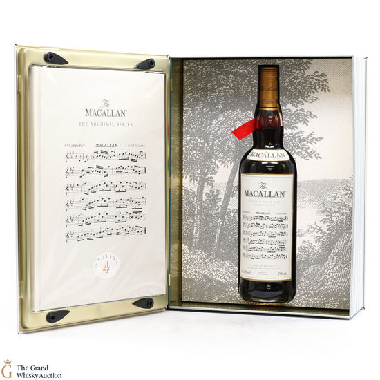 Folio 4: The fourth edition in the Archival Series from The Macallan. Folio 4 remembers the legendary advertising campaigns of the 1970s, 1980s and 1990s that brought The Macallan to the public’s attention outside of Scotland. It is presented in a beautiful book-shaped, tin case. It features an advertisement including a Strathspey composed by James Scott Skinner (1843-1927). The advert notes that Skinner was so moved by his favourite malt he created a unique piece of music featuring his signature lilting notes with the simple catchphrase: “The Macallan. The Malt.” Bottled at 43% ABV, 70cl.