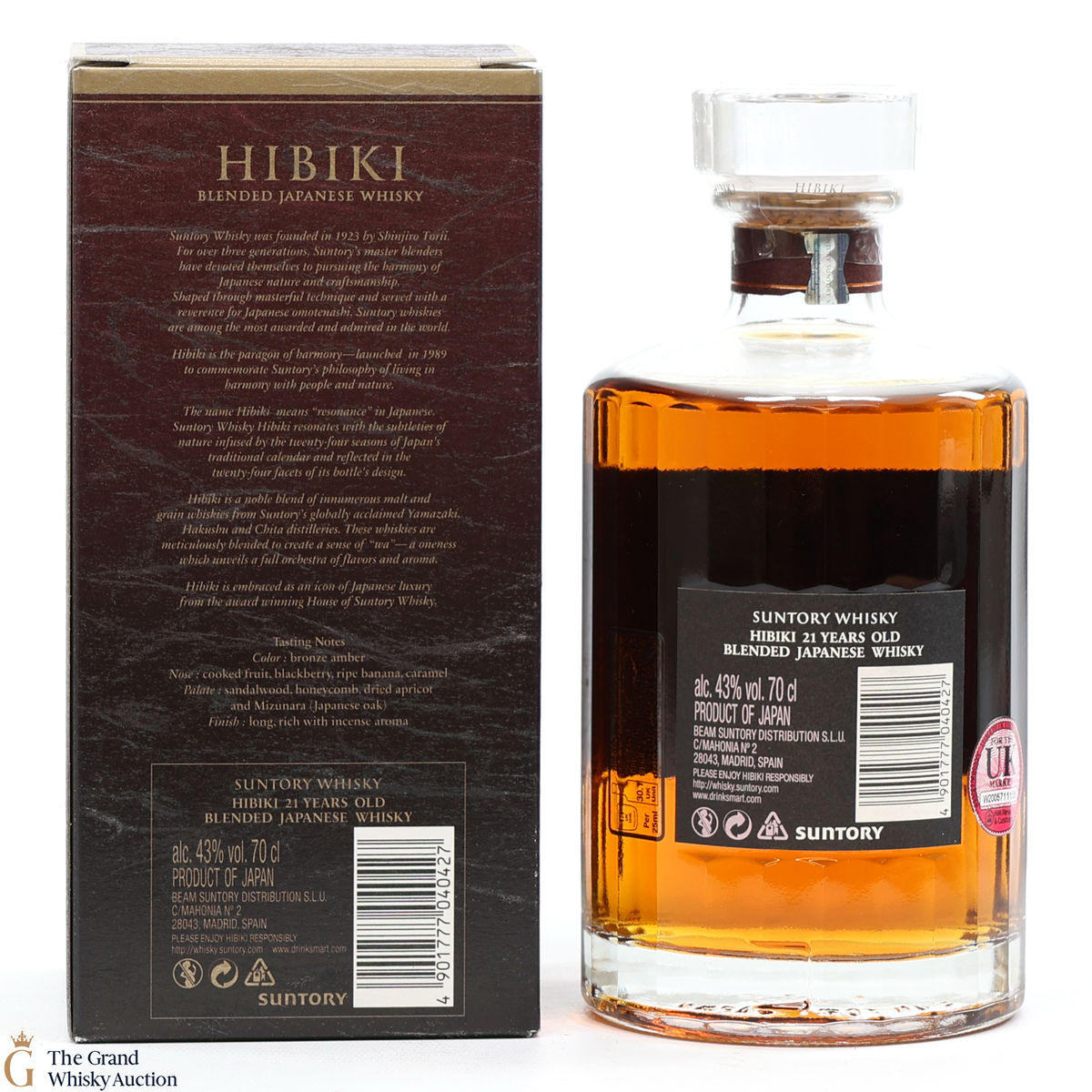 Hibiki 21 Year Old is a very popular blended whisky from Suntory. It is made up of a blend of specially selected mature malt and grain whiskies aged over 21 years. The key Yamazaki sherry casked malt is vatted with other carefully chosen mellow unblended grain whiskies over 21 years old.