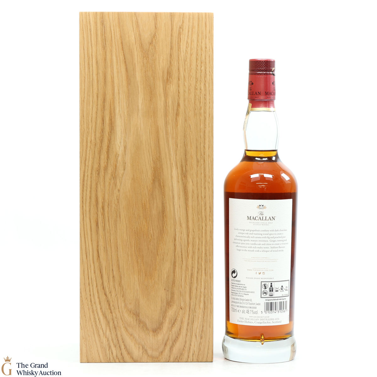 Each bottle in the collection comes in an oak presentation box lined with soft red Scottish leather, and a bespoke case is also available to house a trio of ongoing or limited-edition releases. Every bottle comes with a natural oak plinth which was previously a stave from a cask. Due to the plinths previous life as a whisky barrel you will see some minor imperfections, scratches, holes etc because it is a natural product.