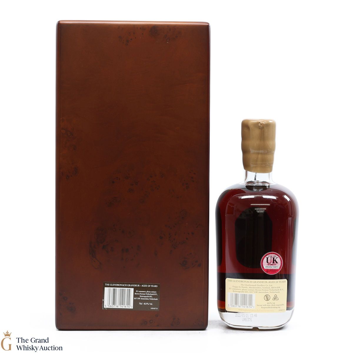 Due to the various ages of bottles and their seals, the condition of liquid is at the buyer's discretion and no claim can be lodged against failure/leakage in transit. Loss and breakage cover is available at 3% of the hammer price as standard. If the lot is not insured, no claim can be lodged against the courier or The Grand Whisky Auction for breakage or loss in transit.