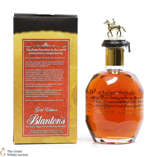 PLEASE NOTE: The wax seal on Blanton's bottles are prone to cracking in transit due to their design. Therefore, as stated in our T&C’s, we do not and will not accept liability should the seal be breached, broken, split or leak in transit. Additionally, please know due to the design of the internal cardboard packaging that surrounds the top of the bottles, it too may be torn. By bidding on this lot you have understood this to be true. Insurance is for complete breakage or loss in transit only.
