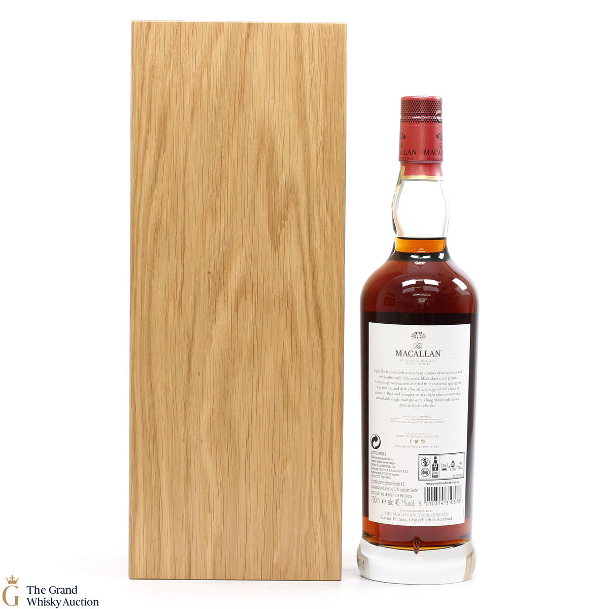 Each bottle in the collection comes in an oak presentation box lined with soft red Scottish leather, and a bespoke case is also available to house a trio of ongoing or limited-edition releases. Every bottle comes with a natural oak plinth which was previously a stave from a cask. Due to the plinths previous life as a whisky barrel you will see some minor imperfections, scratches, holes etc because it is a natural product.