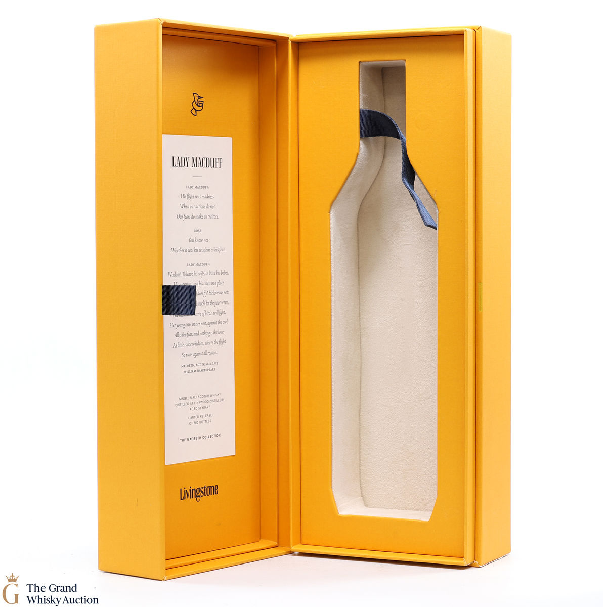 The Lady Macduff release was distilled at the Linkwood Distillery, this was aged for 31 years and matured in a Bourbon Barrel before being bottled at 48.2%. This is one of only 650 bottles released.
