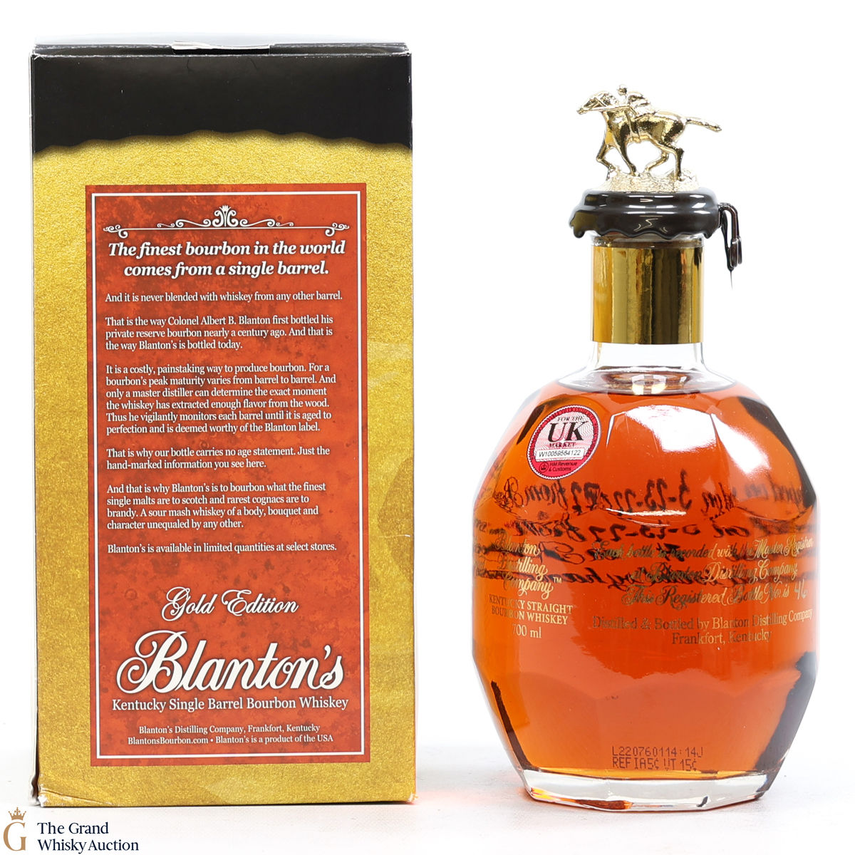 PLEASE NOTE: The wax seal on Blanton's bottles are prone to cracking in transit due to their design. Therefore, as stated in our T&C’s, we do not and will not accept liability should the seal be breached, broken, split or leak in transit. Additionally, please know due to the design of the internal cardboard packaging that surrounds the top of the bottles, it too may be torn. By bidding on this lot you have understood this to be true. Insurance is for complete breakage or loss in transit only.