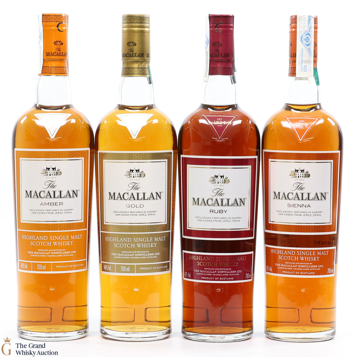 This lot contains 4 x 70 cl, Gold, Amber, Sienna & Ruby