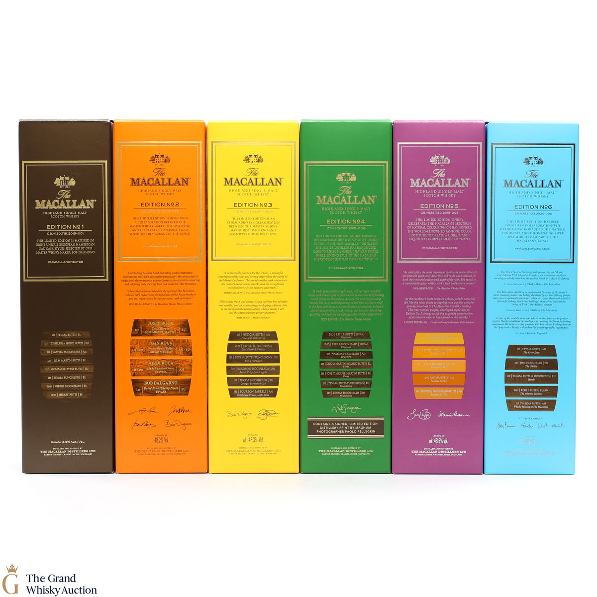 This lot brings together the Macallan Edition set to date, comprising of Edition no. 1, 2, 3 4, 5 & 6 in the annual limited edition series.
