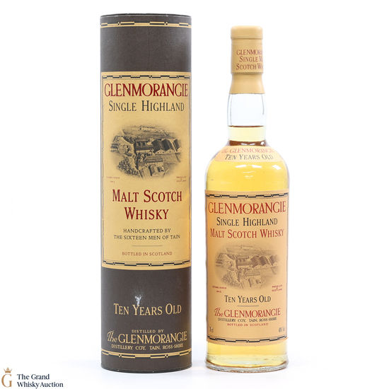 An older style bottling of Glenmorangie 10-year-old. Handcrafted by the sixteen men of Tain.