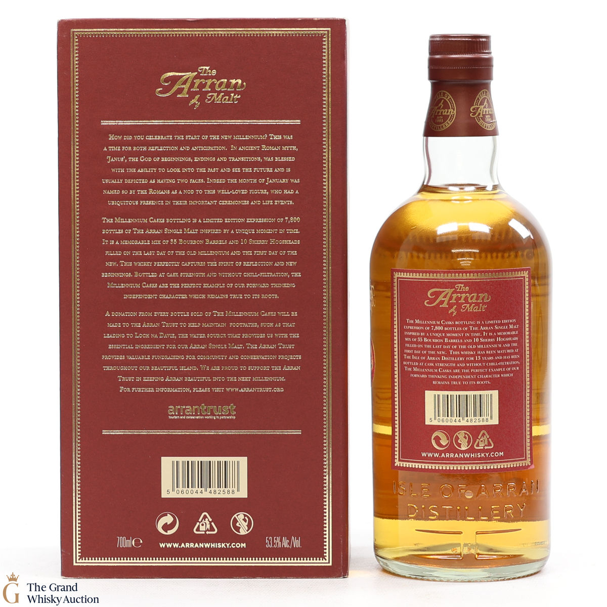 10 sherry hogsheads and 35 bourbon barrels were used in the making of the Arran Millennium Cask.