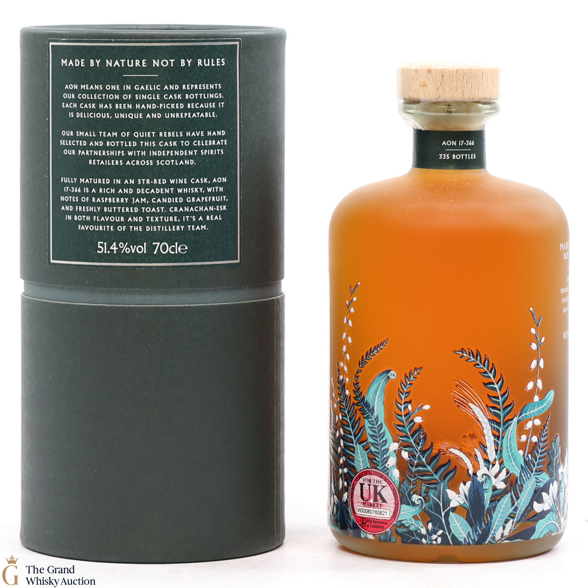 Fully matured in an STR-Red Wine cask (shaved, toasted and re-charred), Aon 17-366 is said to have notes of raspberry jam, candied grapefruit, and freshly buttered toast.