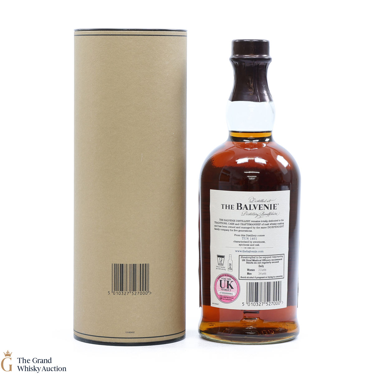 5 traditional whisky casks & 4 sherry butts were hand-selected by Malt Master David Stewart from Warehouse 24 at Balvenie Distillery to make Tun 1401 Batch 5. They were combined and rested for several months in Tun 1401 – The Balvenie’s traditional oak marrying vessel.