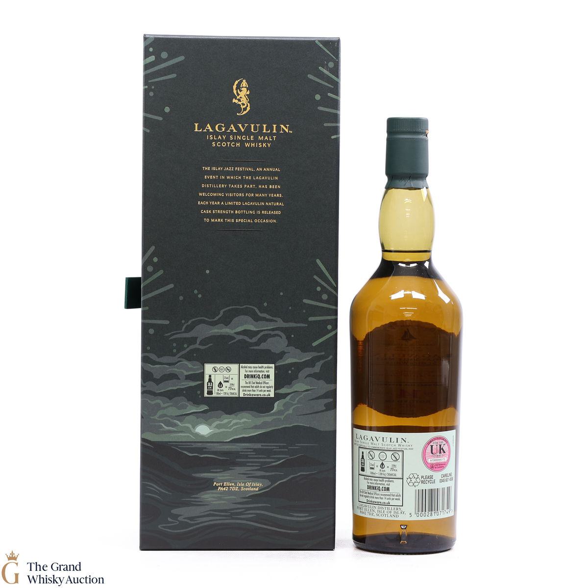 A bottling only released at the distillery bottled especially to commemorate the 2022 Jazz festival on Islay. This is one of only 3000 bottles that has uniquely been matured in refill American oak and then finished in brandy seasoned hogsheads. This has added an unexpected twist of sweetness to typical Lagavulin smokiness. Bottled at the cask strength of 55.4%.