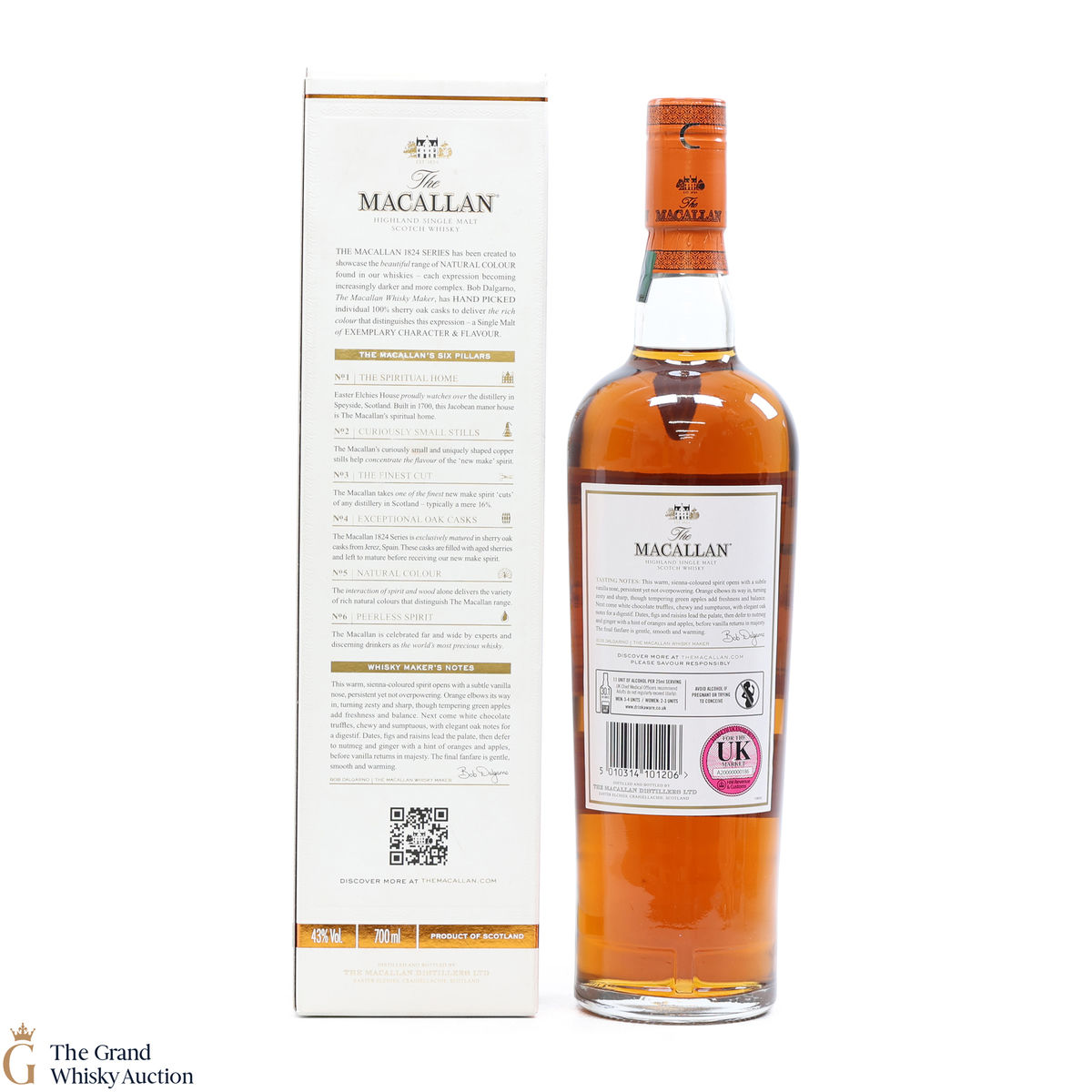 The Macallan 1824 Series celebrates natural colour. The most distinctive and defining characteristic of Macallan is the sherry-seasoned oak casks that are used to mature the whisky. This series shows commitment to 100% natural colour, drawn from wood. The colour of each expression becomes deeper as the range progresses.