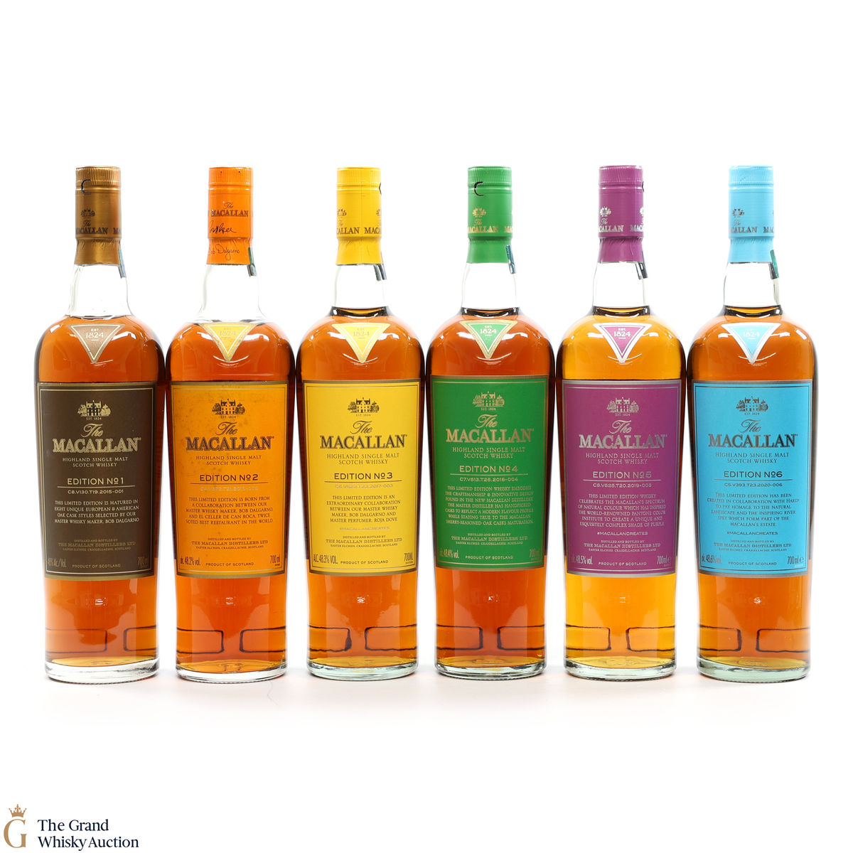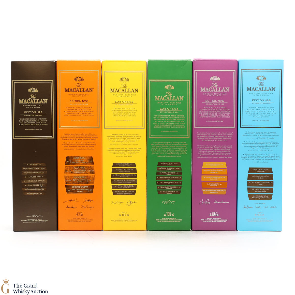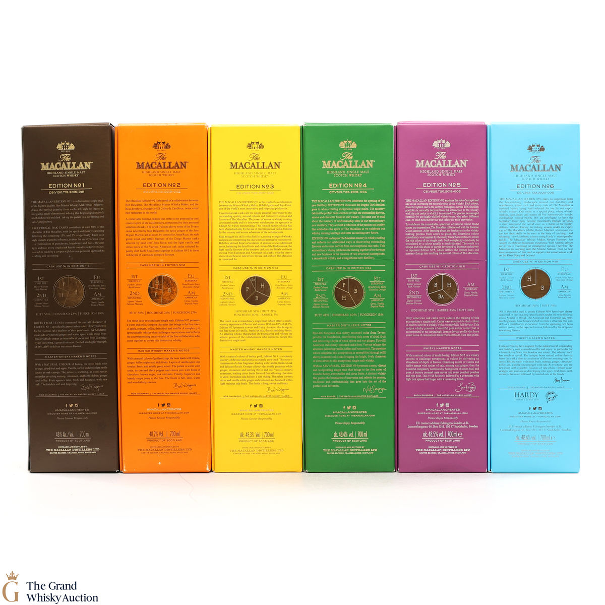 This lot brings together the Macallan Edition set, comprising of Edition No.1-6 in the annual limited edition series 2015-2020.