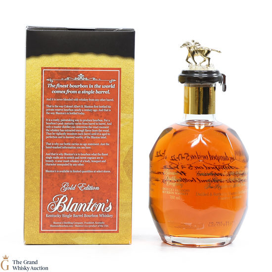 PLEASE NOTE: The wax seal on Blanton's bottles are prone to cracking in transit due to their design. Therefore, as stated in our T&C’s, we do not and will not accept liability should the seal be breached, broken, split or leak in transit. Additionally, please know due to the design of the internal cardboard packaging that surrounds the top of the bottles, it too may be torn. By bidding on this lot you have understood this to be true. Insurance is for complete breakage or loss in transit only.