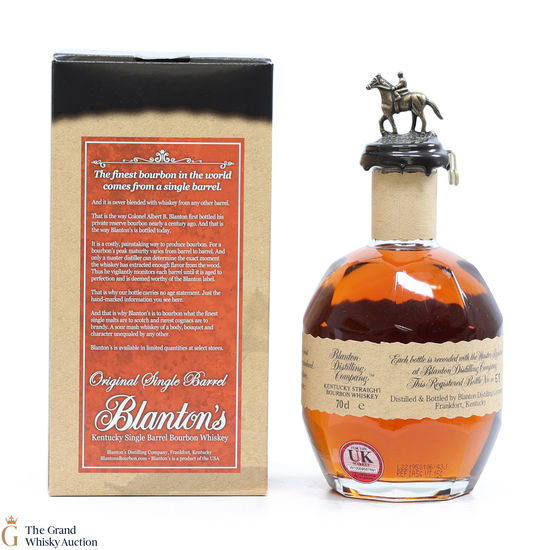 PLEASE NOTE: The wax seal on Blanton's bottles are prone to cracking in transit due to their design. Therefore, as stated in our T&C’s, we do not and will not accept liability should the seal be breached, broken, split or leak in transit. Additionally, please know due to the design of the internal cardboard packaging that surrounds the top of the bottles, it too may be torn. By bidding on this lot you have understood this to be true. Insurance is for complete breakage or loss in transit only.