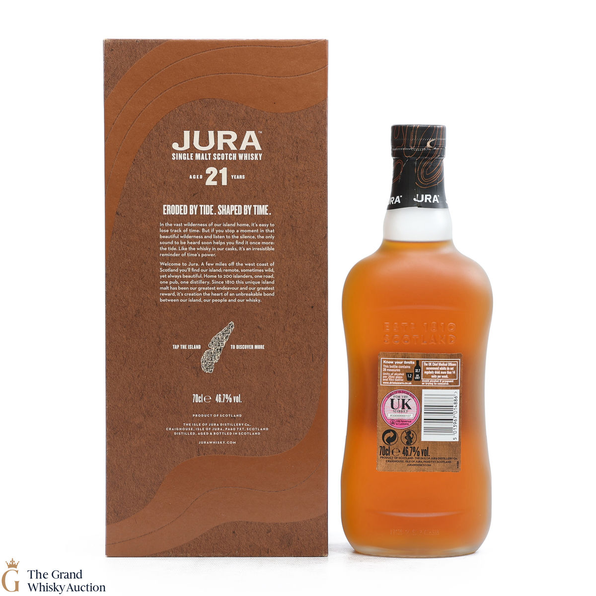 Matured for 21 years in ex-bourbon barrels this bottle 'Tide' by Jura was then finished in hand selected virgin American white Oak Casks before being bottled.