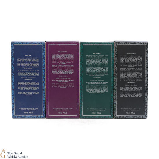 The Dalmore Rivers Collection includes four bottlings named after four famous Scottish Salmon rivers, The Dee, The Spey, The Tweed and The Tay. Each expression was bottled at 40%. This lot includes 4 x 70cl bottlings.