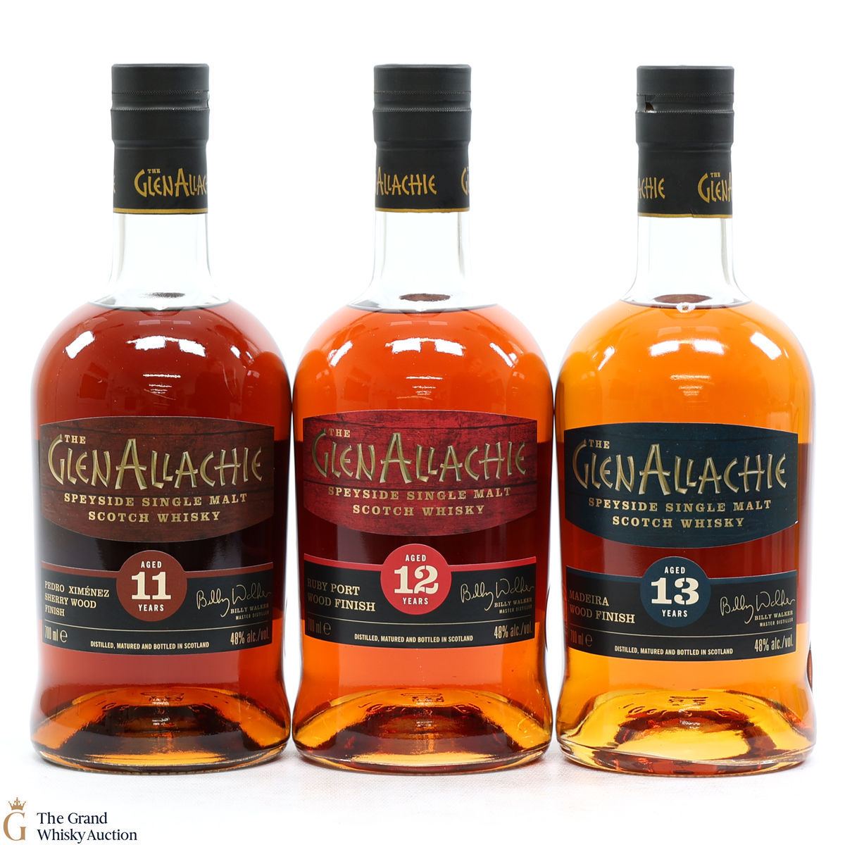 GlenAllachie - 13 Year Old - Madeira Wood Finish: Distilled at the GlenAllachie Distillery, this single malt was matured for a total of 13 years, first maturing for 11 years in an American Oak ex-bourbon barrel, then finished in selected Madeira barriques.48%, 70cl.