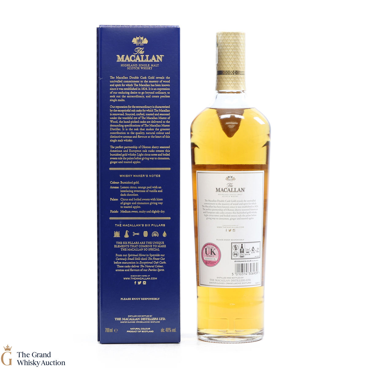 Macallan Gold was first introduced in 2012 as part of the distillery's 1824 range of non-age statement expressions, before being renamed Macallan Gold Double Cask in 2018 as part of the new core range. Matured in a combination of first fill and refill American oak and European oak sherry casks to create an incredibly smooth and rich single malt. Soft gold in colour, this is the lightest expression of the Macallan range, but still packed with typical Speyside Macallan flavours.