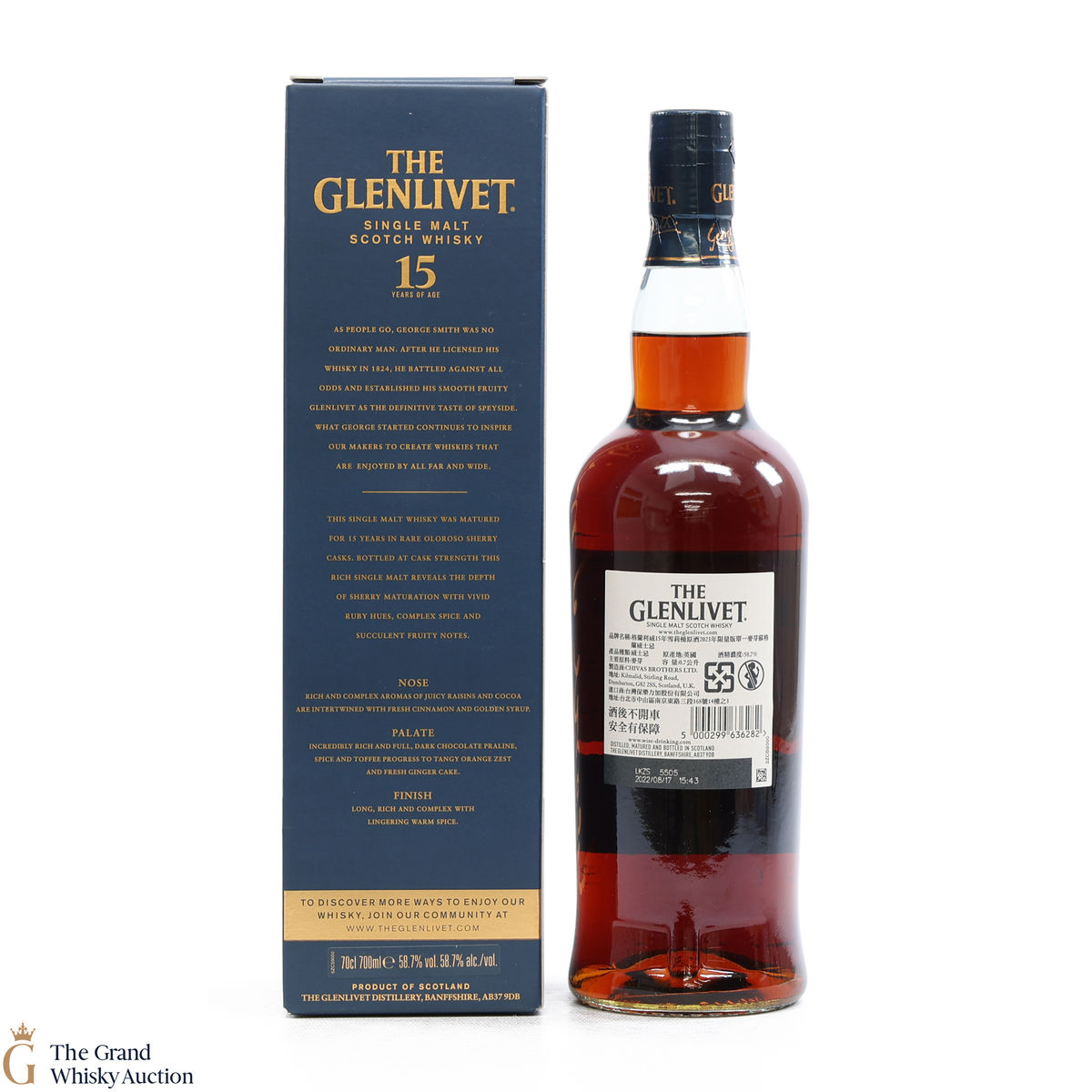 This 15-year-old expression from The Glenlivet Distillery was matured in oloroso sherry casks and bottled at cask strength as a 2023 limited edition.