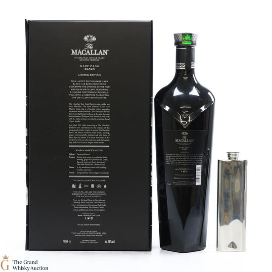The Macallan Rare Cask Black Limited Edition was released to celebrate the opening of the new Macallan Distillery. It is part of the Macallan 1824 series and features stunning photography by Paolo Pellegrin and a bespoke flask from the Distillery Visitor Centre. The release was a limited edition of 7000 sets, which were only available at airports.