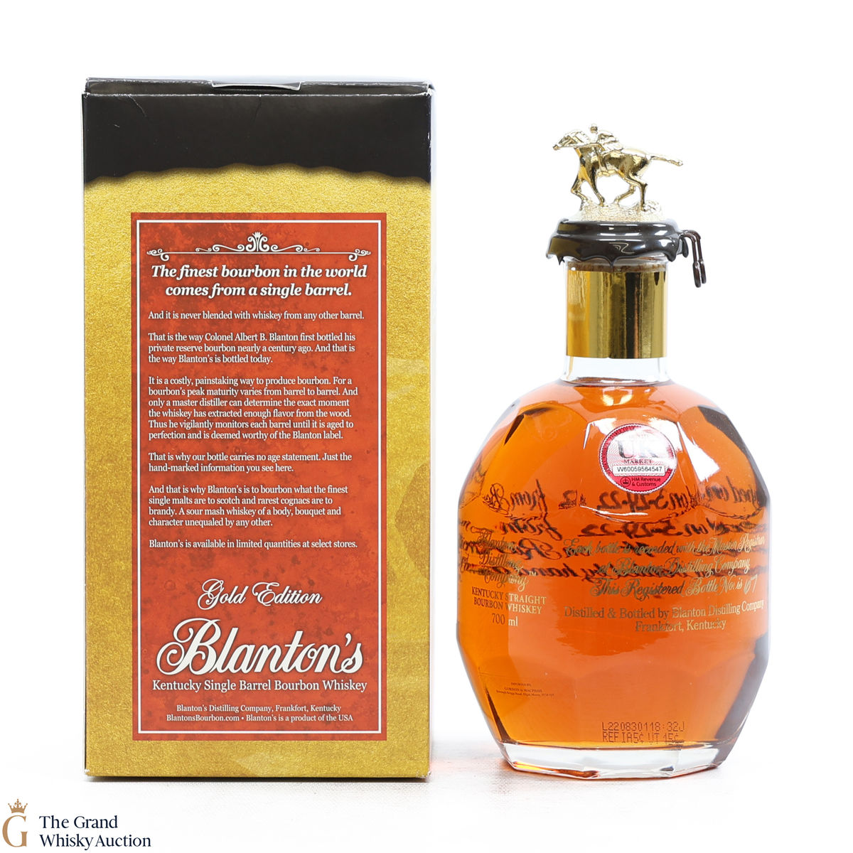 PLEASE NOTE: The wax seal on Blanton's bottles are prone to cracking in transit due to their design. Therefore, as stated in our T&C’s, we do not and will not accept liability should the seal be breached, broken, split or leak in transit. Additionally, please know due to the design of the internal cardboard packaging that surrounds the top of the bottles, it too may be torn. By bidding on this lot you have understood this to be true. Insurance is for complete breakage or loss in transit only.