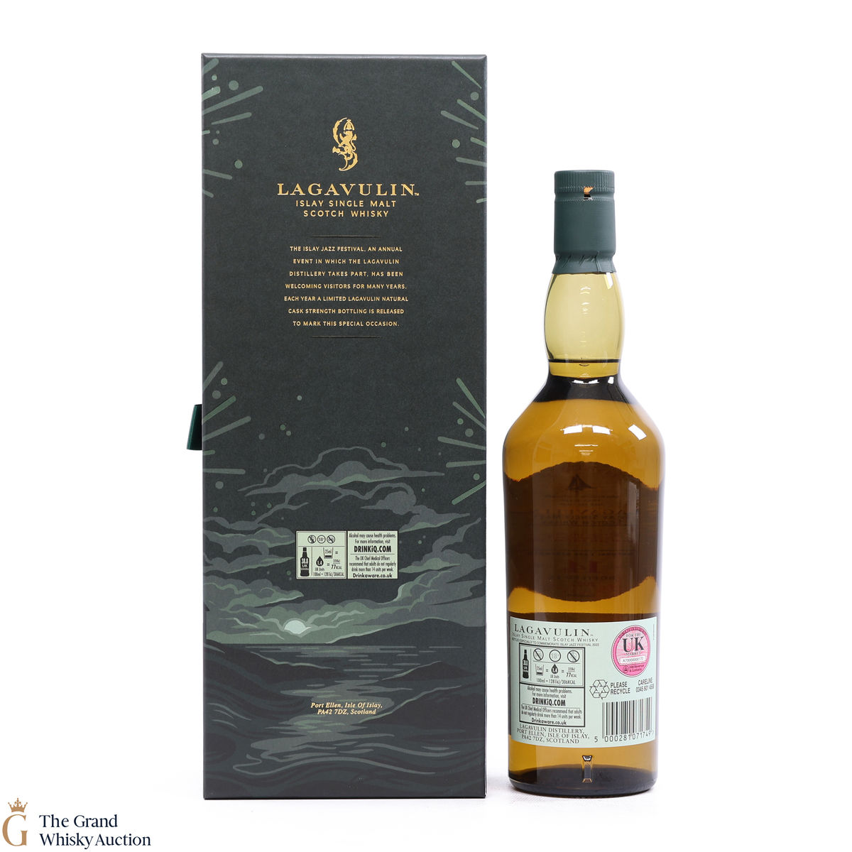 A bottling only released at the distillery bottled especially to commemorate the 2022 Jazz festival on Islay. This is one of only 3000 bottles that has uniquely been matured in refill American oak and then finished in brandy seasoned hogsheads. This has added an unexpected twist of sweetness to typical Lagavulin smokiness. Bottled at the cask strength of 55.4%.