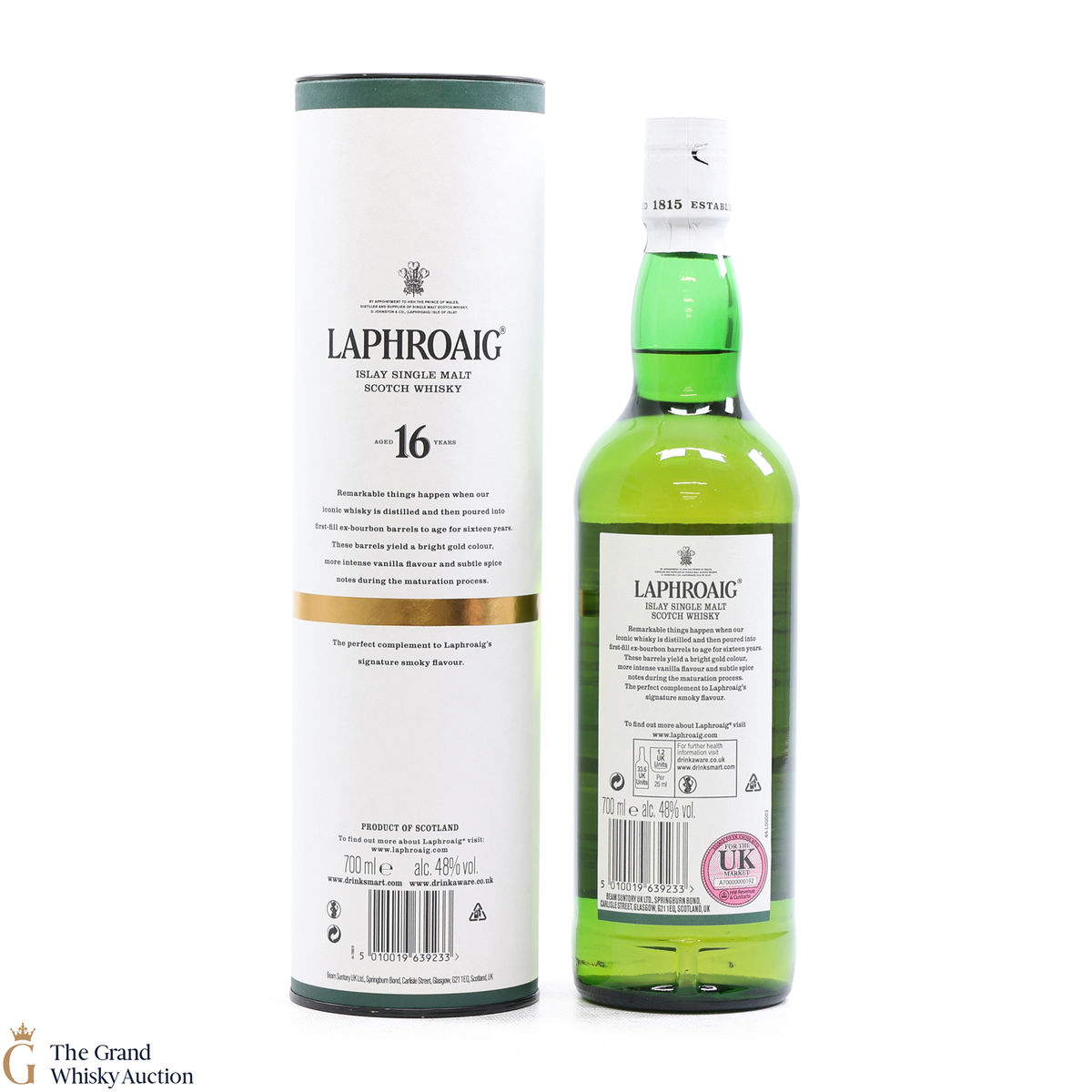 This Islay Single Malt was distilled at the Laphroaig Distillery, then poured into first-fill ex-bourbon barrels to age for 16 years.