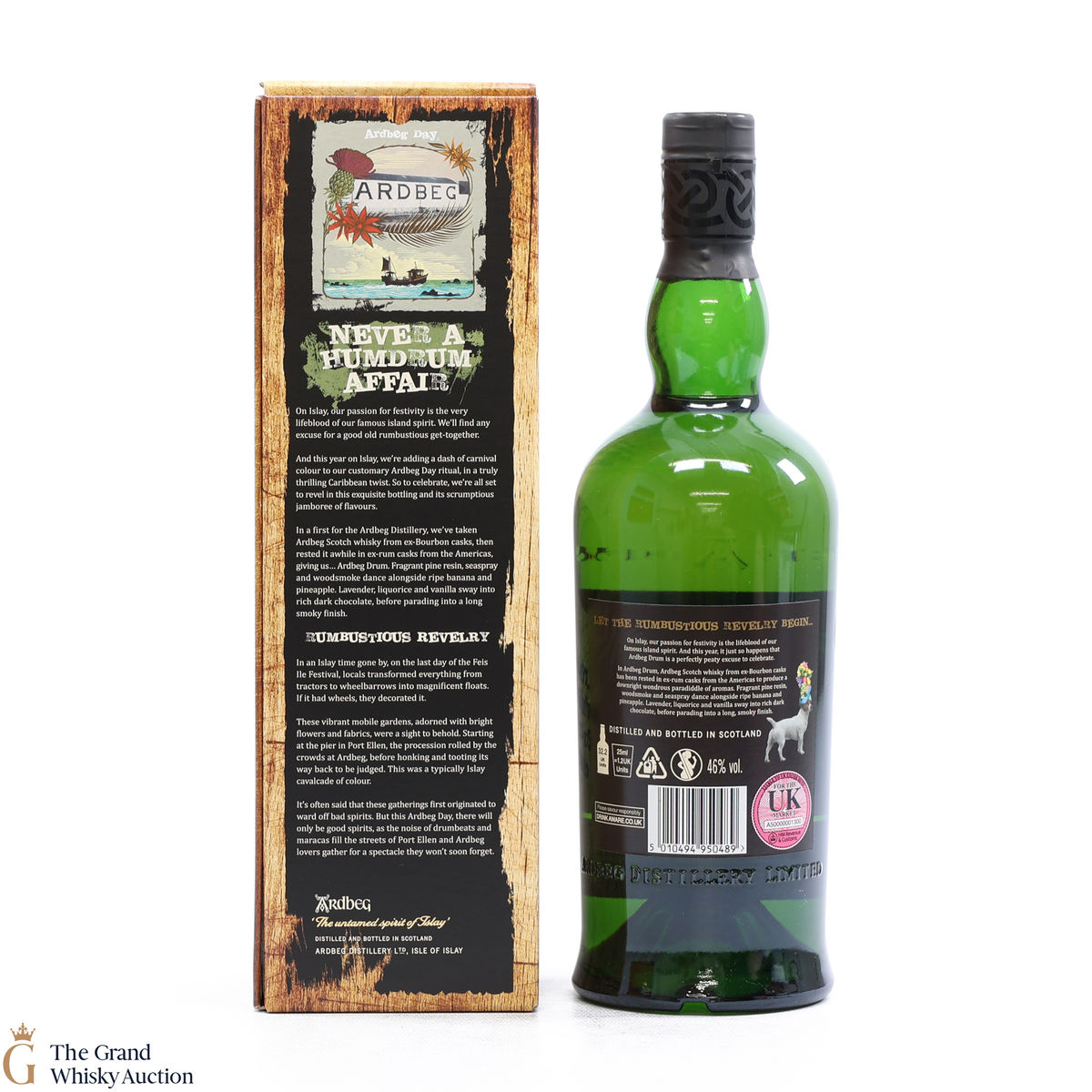 This is the 2019 Ardbeg Drum Limited edition. The Ardbeg Drum is a non-age-statement single malt matured in ex-Bourbon casks and then finished in ex-rum casks from the Americas. It was created to celebrate Ardbeg Day 2019 (June 1) held during the Islay Festival of Music & Malt (Fèis Ìle).