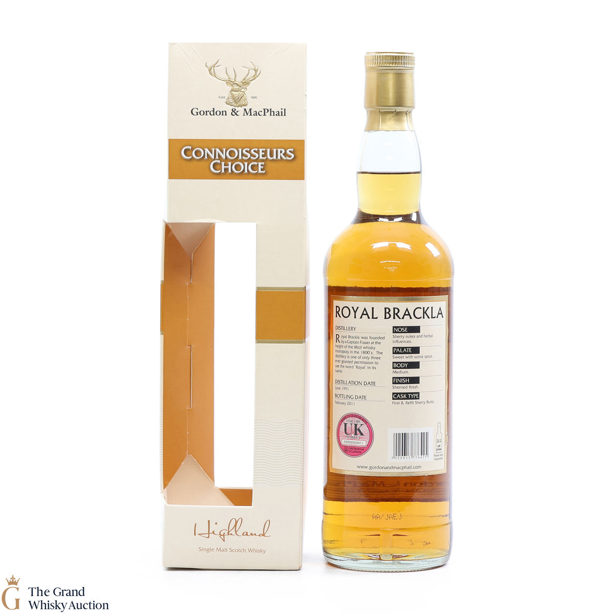Distilled in the Highlands at Royal Brackla in 1991, this was matured in First and Refill Sherry Butts before it was bottled by Gordon and Macphail as part of their connoisseurs choice range in 2011.