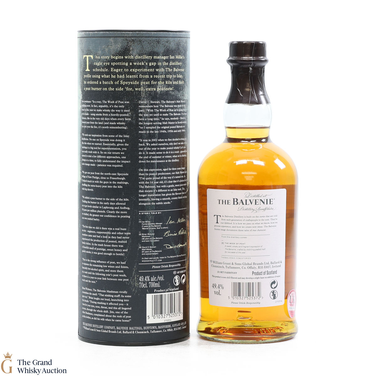 Distillery manager Ian Millar installed a peat burner at Balvenie and since 2002, the distillery has dedicated one week each year to run heavily peated barley through the whisky-making process creating a distinctly different Balvenie. The result is a classic Balvenie expression balancing sweet peat smoke with notes of citrus and honey.