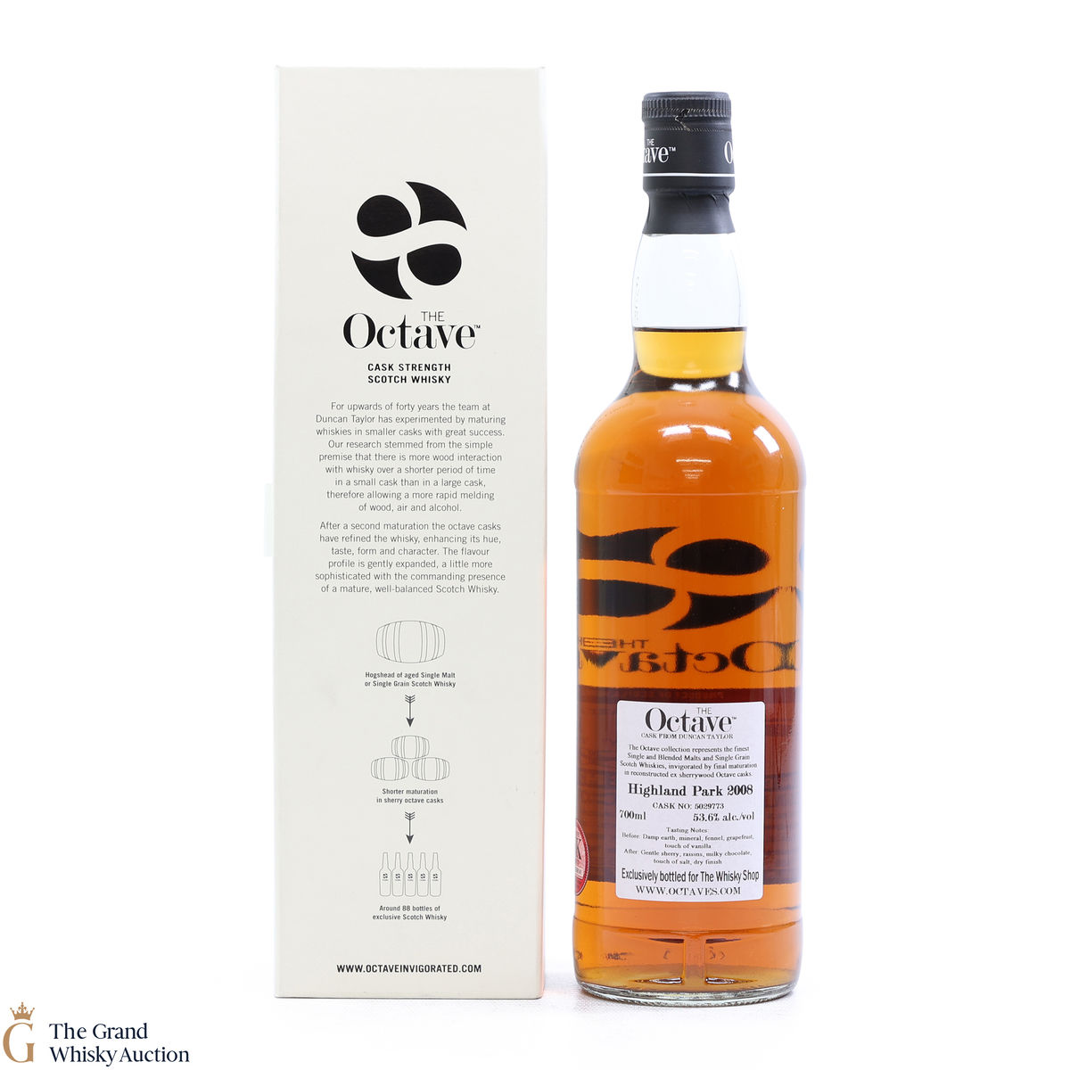 Highland Park 2008 was matured for 13 years in oak casks, then spent 3 months in Octave cask #5029773. It was bottled in 2021 by Duncan Taylor for their The Octave series. This is one of only 112 bottles produced, The Whisky Shop Exclusive.