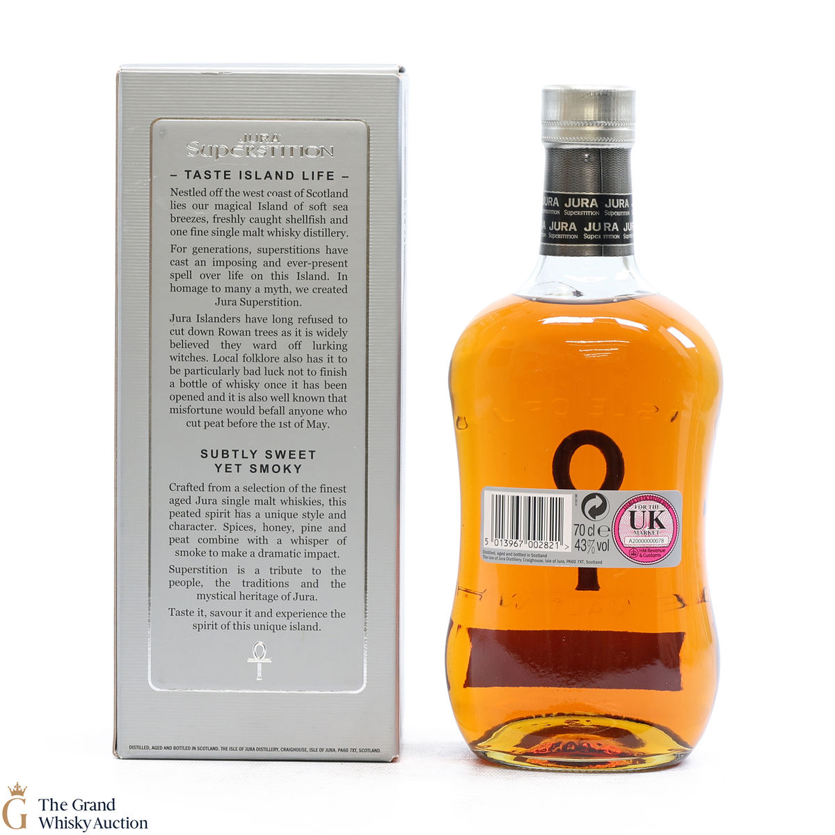This is the relatively more heavily peated version of the single malt, made up of different ages. It is named after the fact that Islanders were very superstitious in the past, this is a nod to them, and to the Island of Jura which is still dotted with ancient stones and markings. When you raise a glass of this whisky, you're raising a glass to the ancient ways of the island.