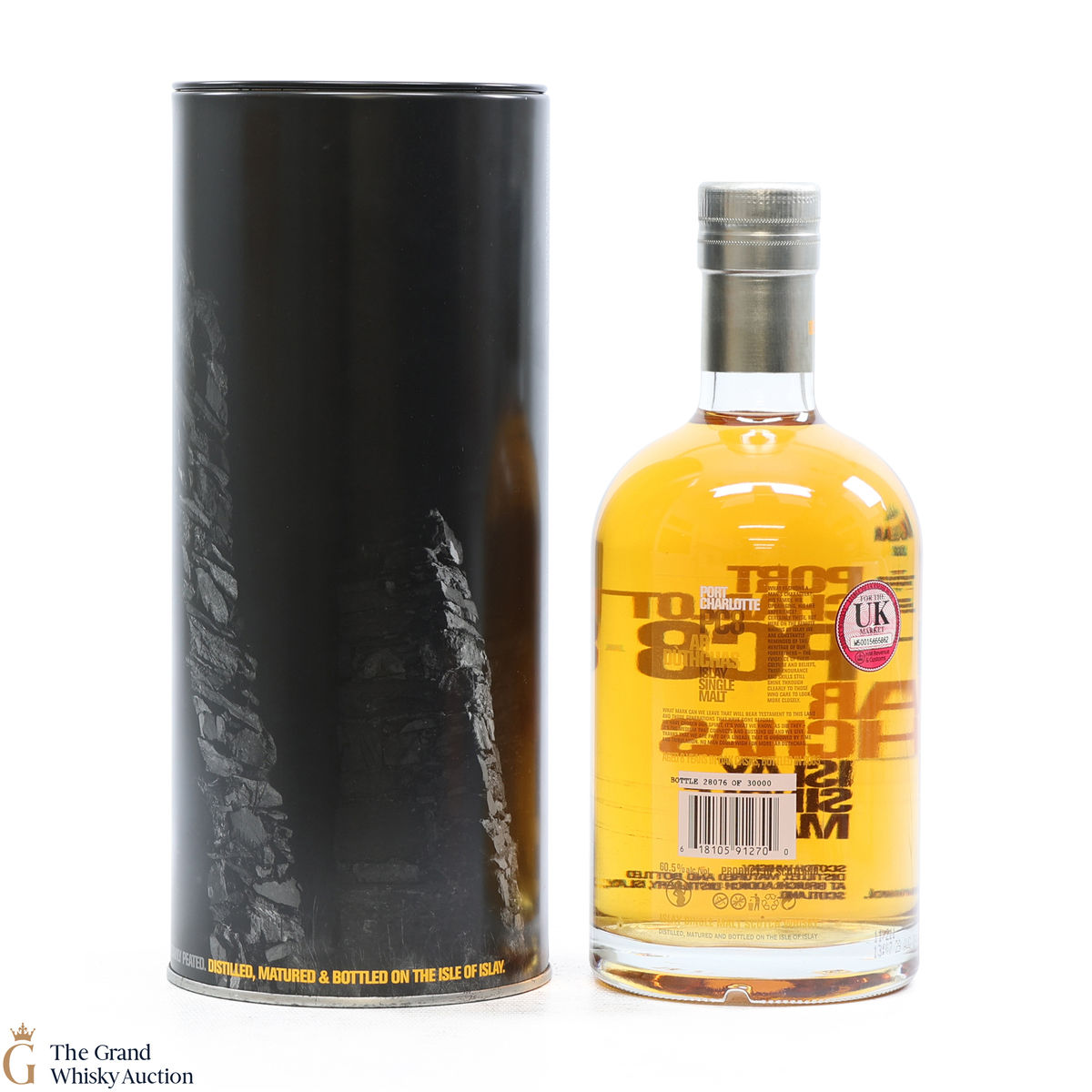 Port Charlotte PC8, produced by Bruichladdich Distillery, is a heavily peated spirit. It was the first release of heavily peated Port Charlotte and was produced in 2009 from some of the first spirits to be produced after the distillery's reopening. The single malt was bottled at 8 years old in 2006 and was limited to 30000 bottles.